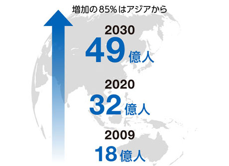 世界における中間所得者層の推移予測